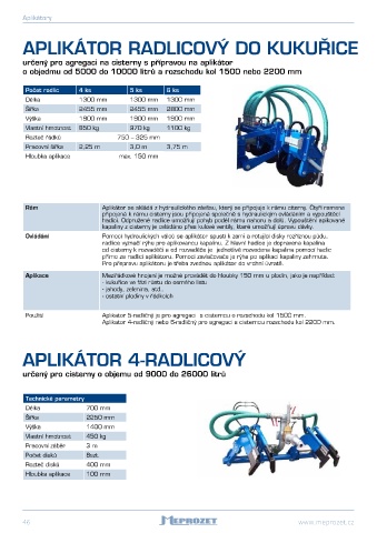Použití Aplikator 5-radličný je pro agregaci s cisternou o rozschodu kol 1500 mm.